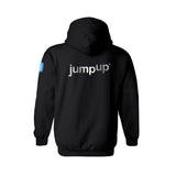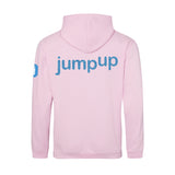 Relax in your very own JumpUp Hoodie, available in black or pink and branded with the JumpUp logo on the reverse and arm. The pink is printed in blue glitter whilst the black is printed in flat silver.