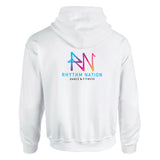 Relax in your very own Rhythm Nation Dance & Fitness Hoodie, available in black or white with Rhythm Nation logo on the Back.